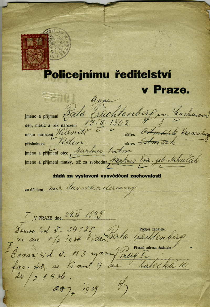 National archives Prague > Police Directorate Prague > 1941-1950 > T > Trachtenbergová Berta