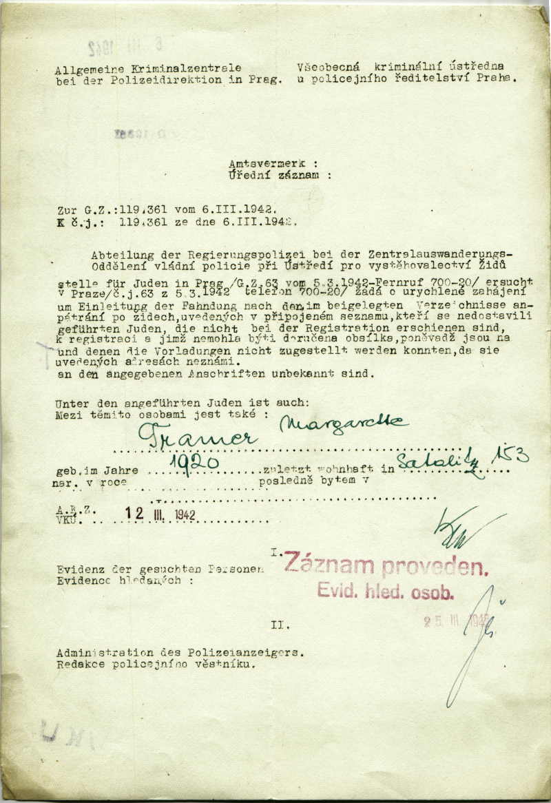 Tramerová Margarete: Pátrání po neregistrovaných Židech