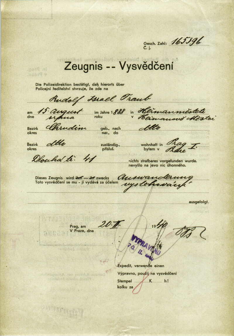 National archives Prague > Police Directorate Prague > 1941-1950 > T > Traub Rudolf