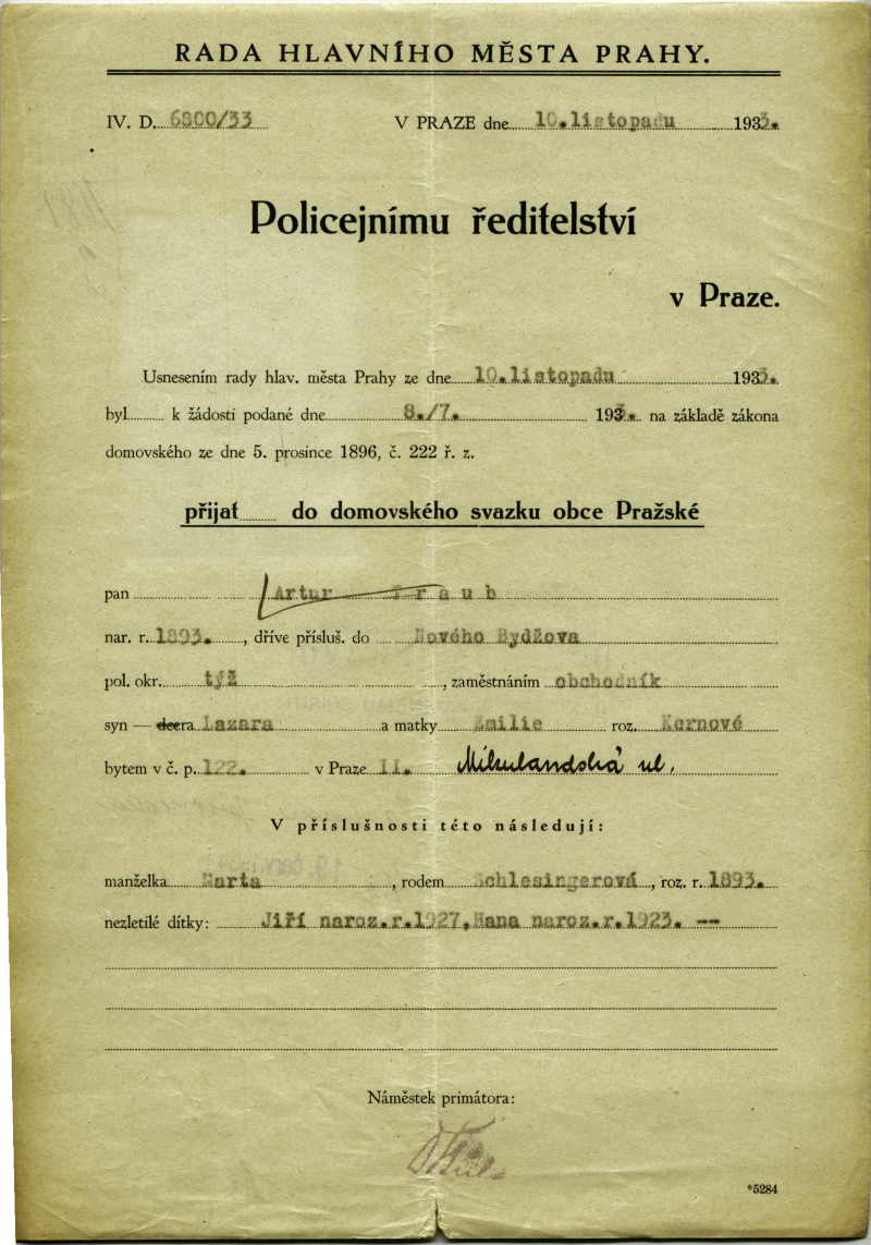 National archives Prague > Police Directorate Prague > 1941-1950 > T > Traub Artur