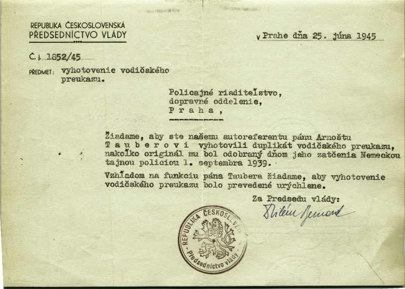 Tauber Arnošt: Žádost o duplikát řidičského průkazu