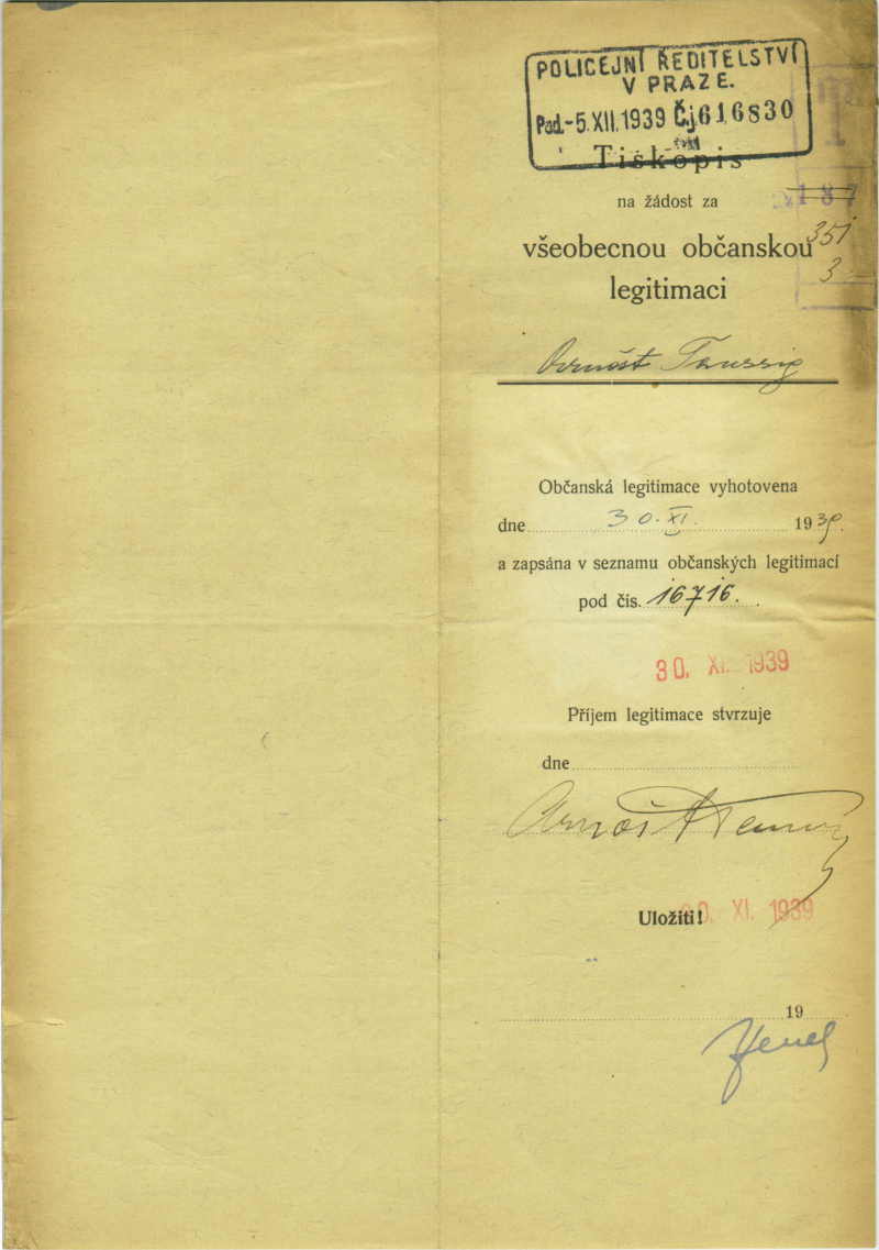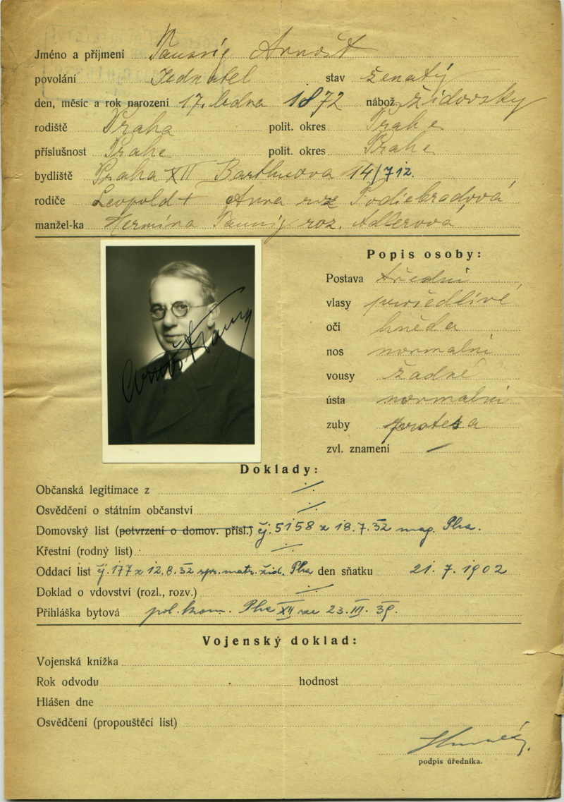 Taussig Arnošt: Identity card application