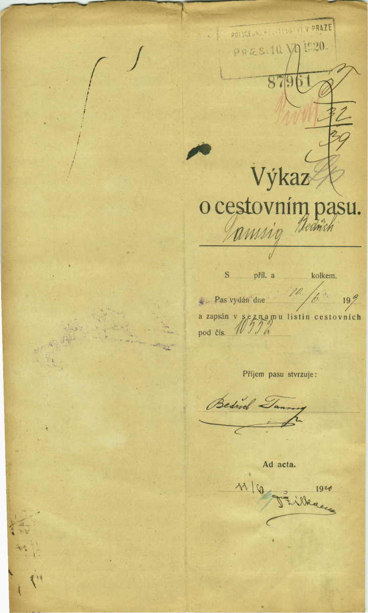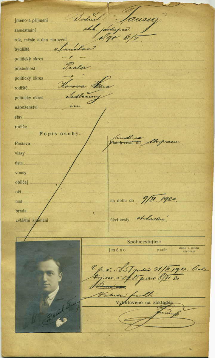 Taussig Bedřich: Passport application