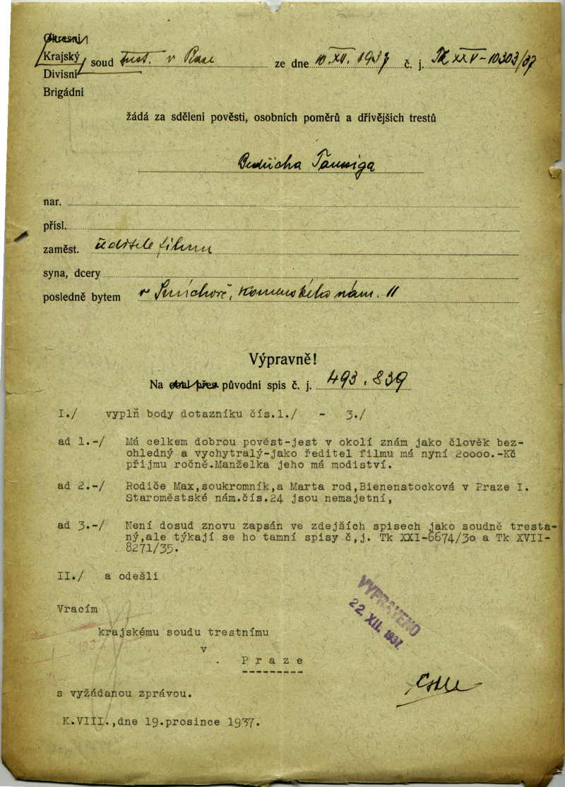 National archives Prague > Police Directorate Prague > 1941-1950 > T > Taussig Bedřich