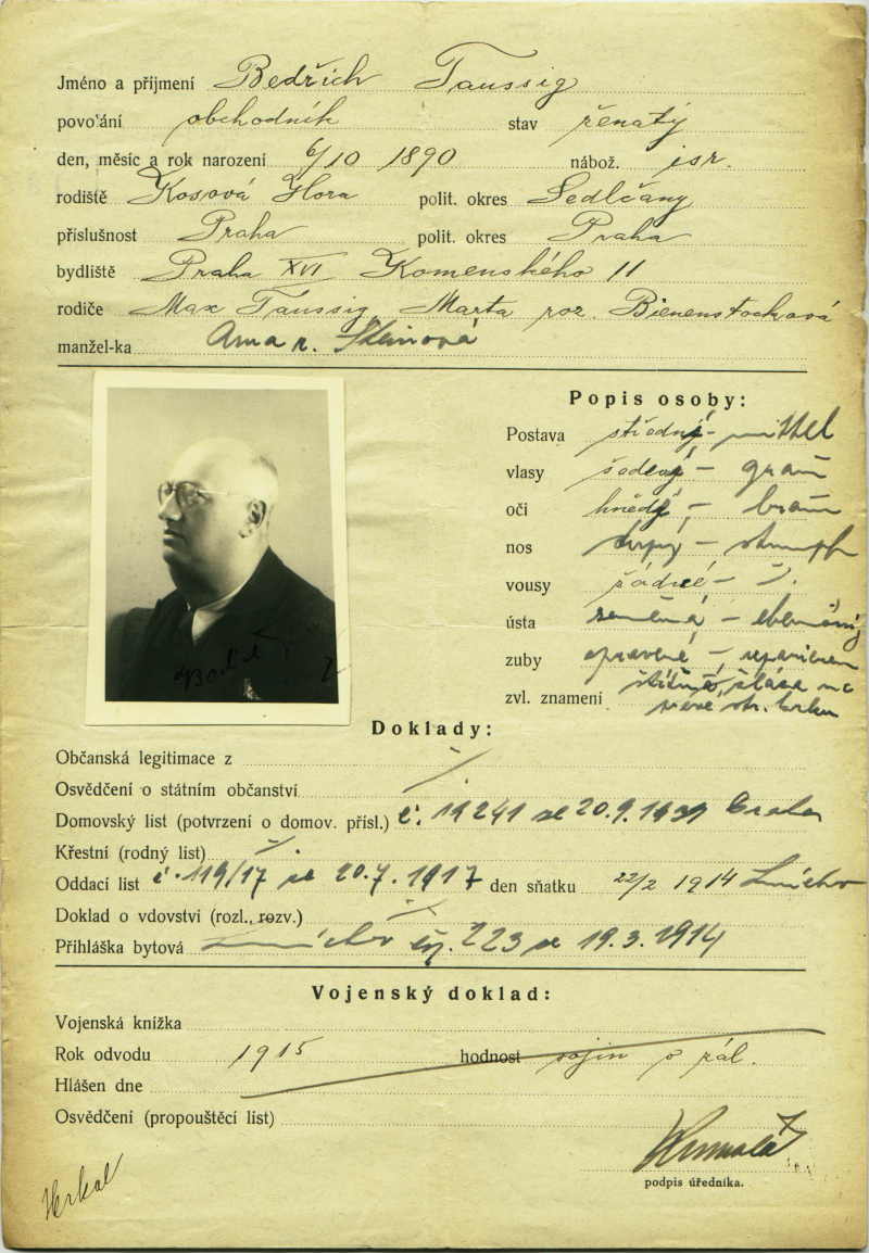 National archives Prague > Police Directorate Prague > 1941-1950 > T > Taussig Bedřich