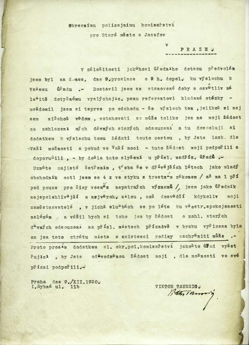 Taussig Viktor: Žádost o vymazání předchozích trestů