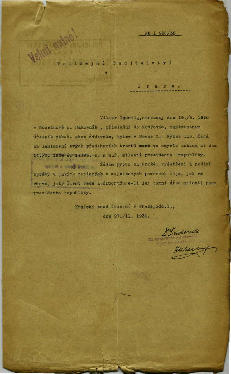 National archives Prague > Police Directorate Prague > 1941-1950 > T > Taussig Viktor