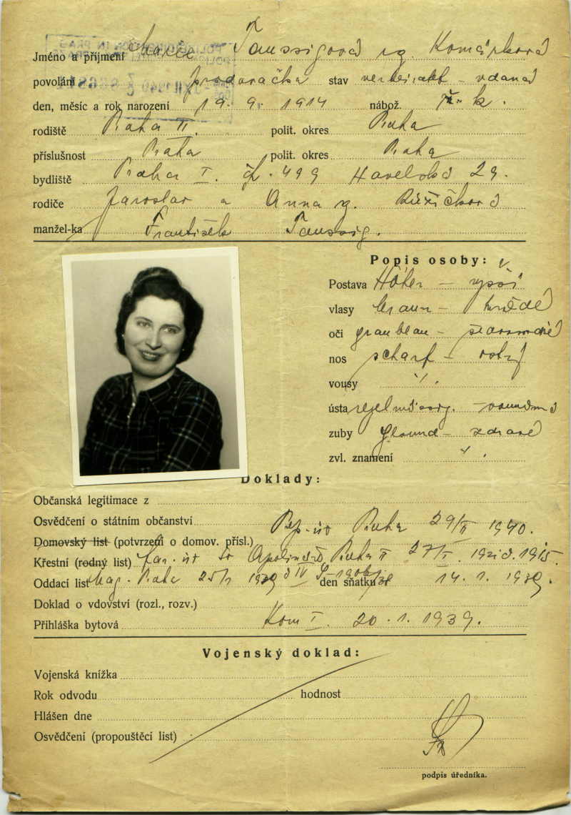 National archives Prague > Police Directorate Prague > 1941-1950 > T > Taussigová Marie