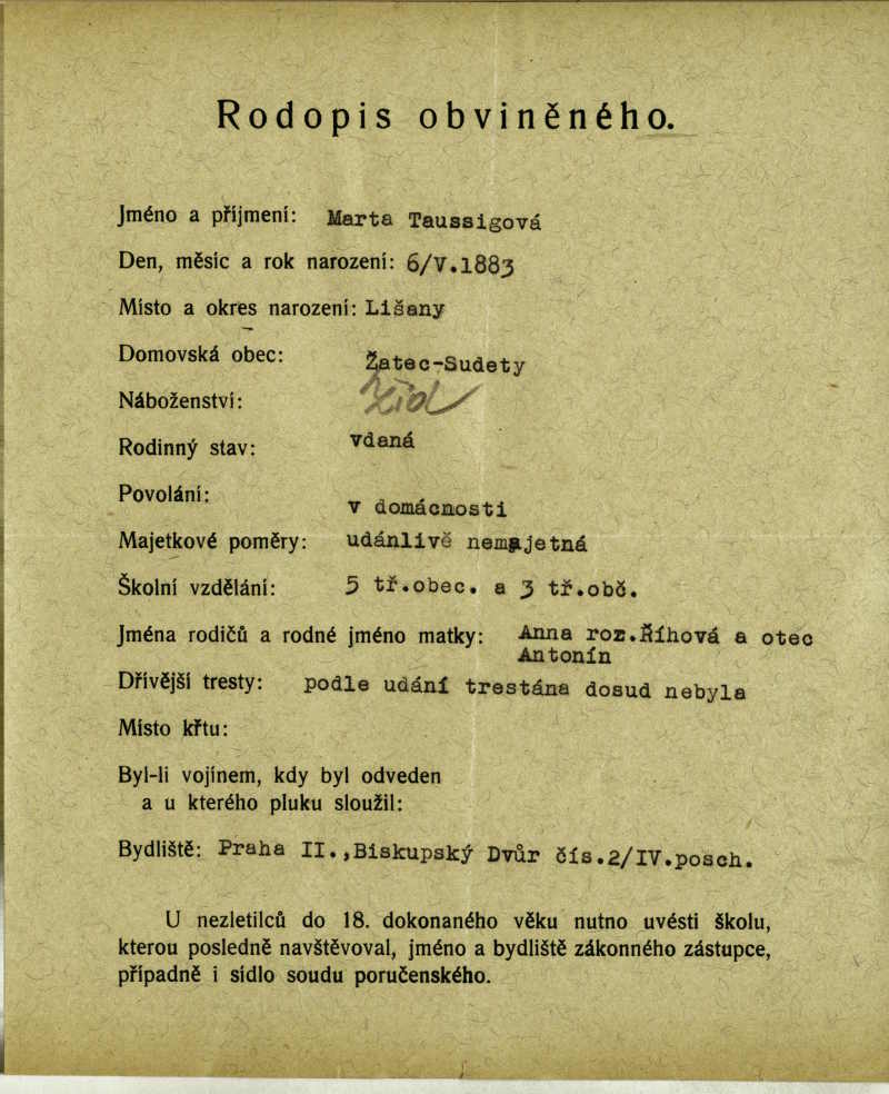 National archives Prague > Police Directorate Prague > 1941-1950 > T > Taussigová Markéta
