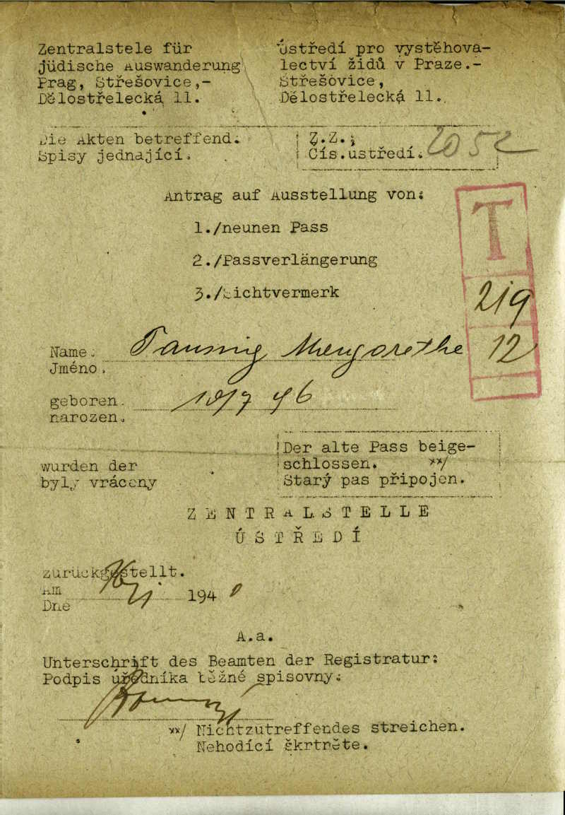 Taussigová Margarete: Note about returning of file to Zentralstelle