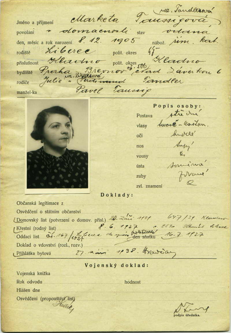 National archives Prague > Police Directorate Prague > 1941-1950 > T > Taussigová Markéta