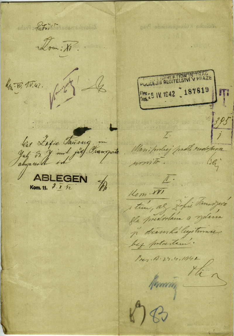 National archives Prague > Police Directorate Prague > 1941-1950 > T > Taussigová Žofie