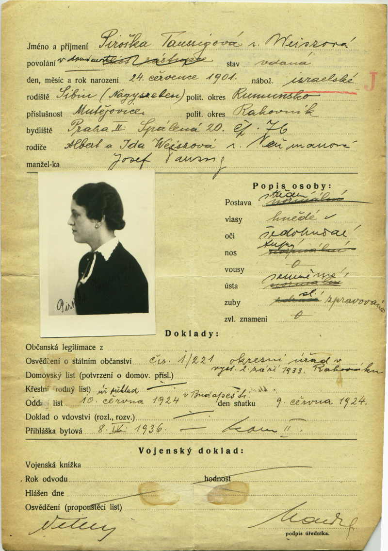 National archives Prague > Police Directorate Prague > 1941-1950 > T > Taussigová Piroška