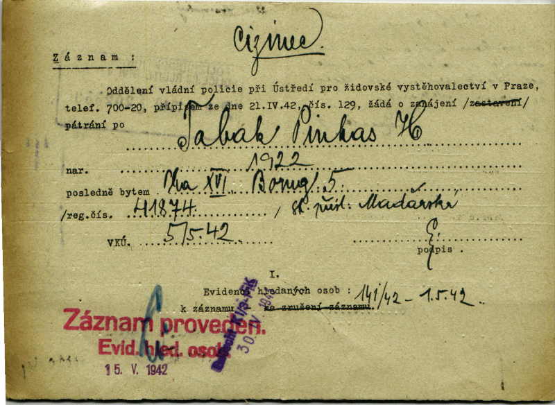 This database contains the names and fates of those who were deported from the territory of today’s Czech Republic, be it their homeland or may they have been deported to the Theresienstadt ghetto before from different european countries. Further, it contains basic information on those men, women and children, most of whom were Roma or Sinti, who died as prisoners of the so-called „Gypsy camp I“ Lety u Písku.