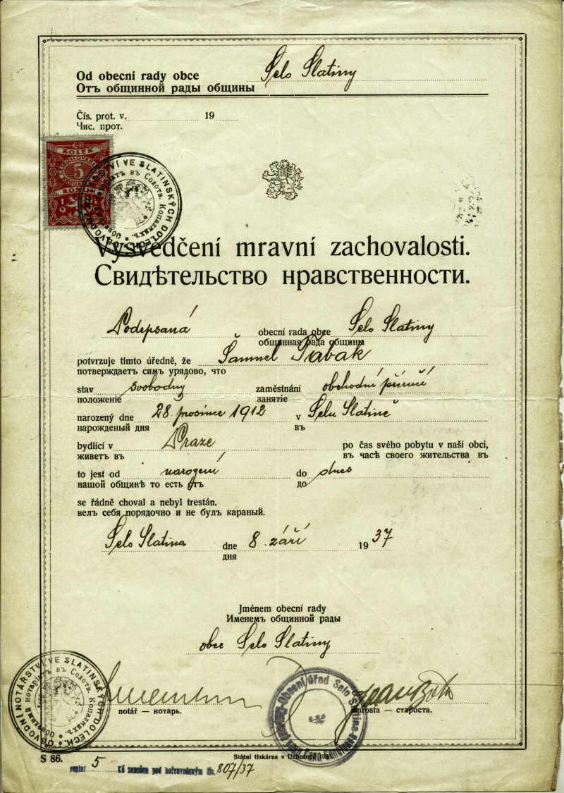 Tabak Samuel: Probity certificate