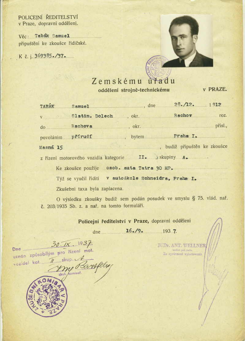 Tabak Samuel: Připuštění k řidičské zkoušce