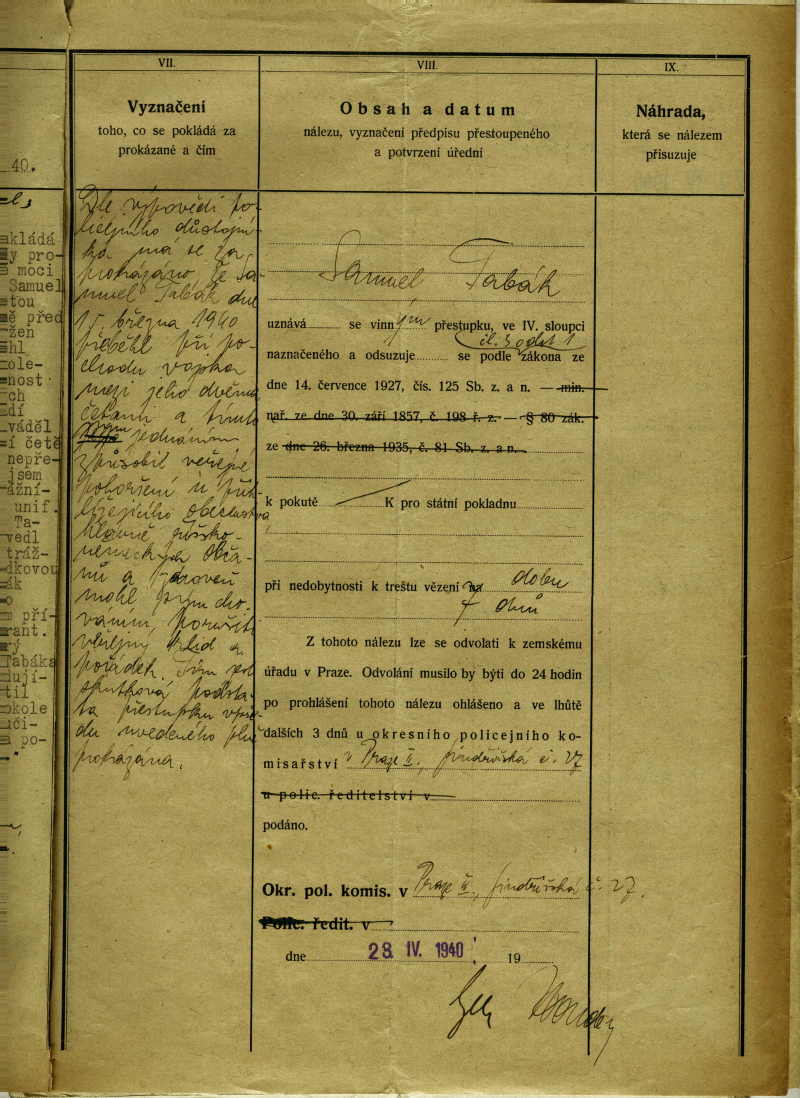 National archives Prague > Police Directorate Prague > 1941-1950 > T > Tabak Samuel