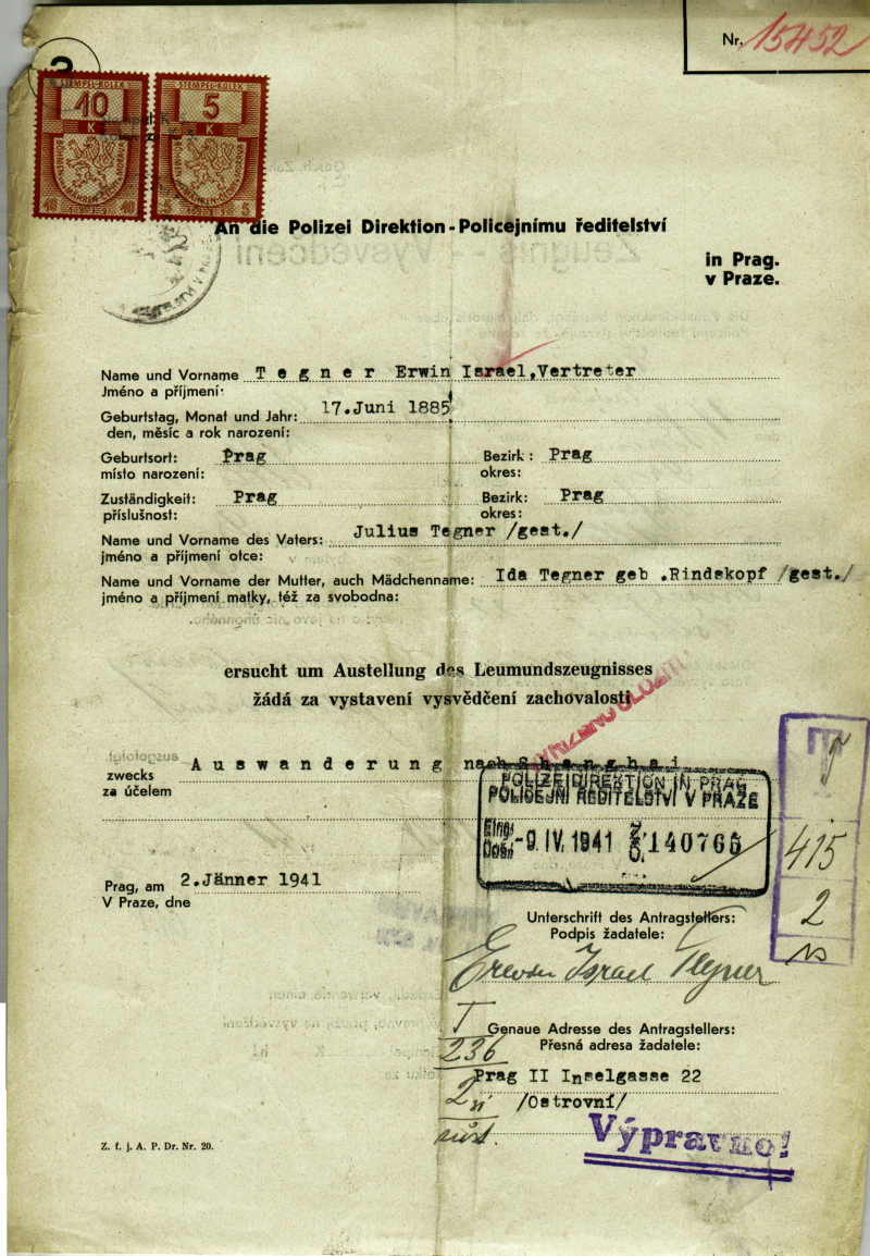 National archives Prague > Police Directorate Prague > 1941-1950 > T > Tegner Ervín
