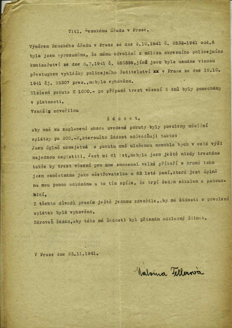 National archives Prague > Police Directorate Prague > 1941-1950 > T > Tellerová Malvína