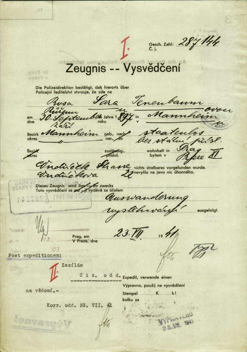 National archives Prague > Police Directorate Prague > 1941-1950 > T > Tenenbaumová Růžena