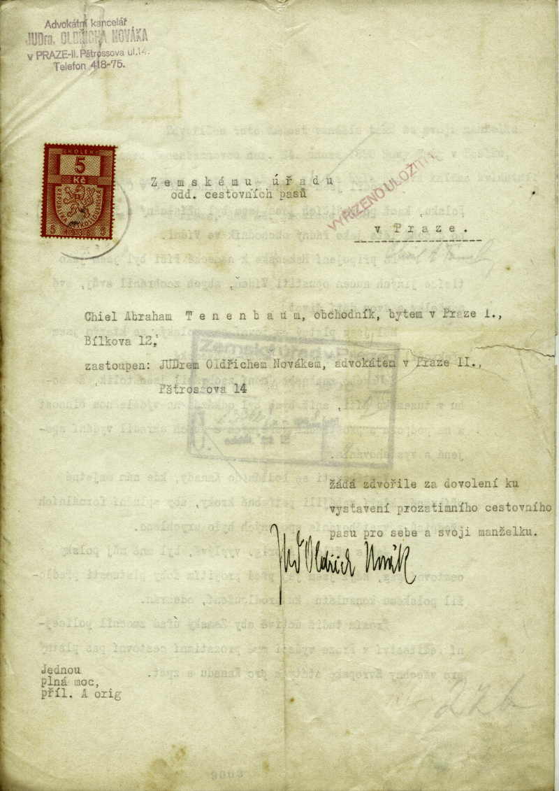 National archives Prague > Police Directorate Prague > 1931-1940 > T > Tenenbaum Chiel Abraham