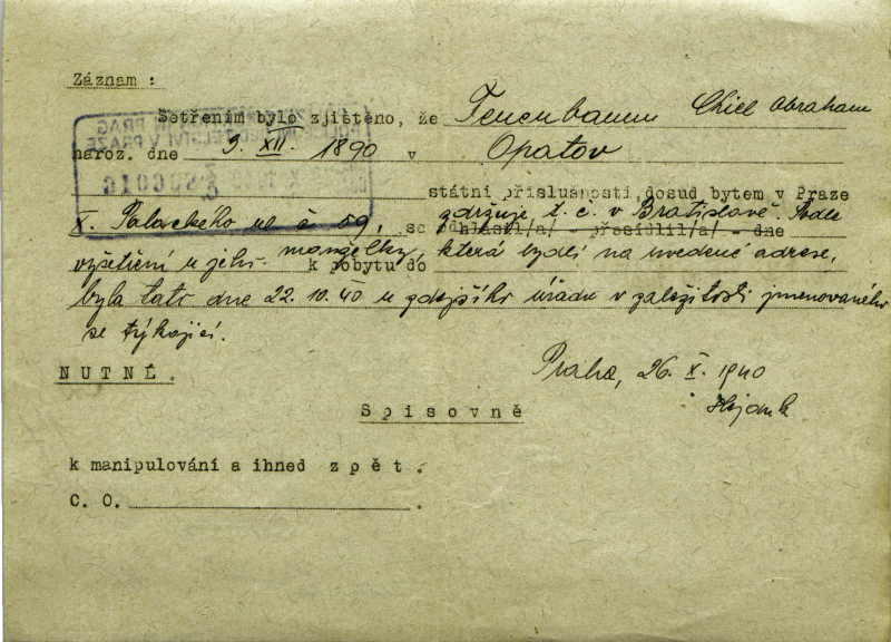 National archives Prague > Police Directorate Prague > 1931-1940 > T > Tenenbaum Chiel Abraham