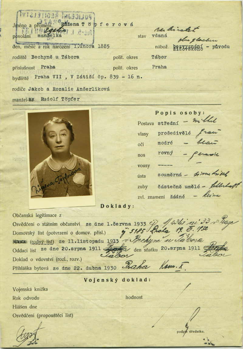 National archives Prague > Police Directorate Prague > 1931-1940 > T > Töpferová Růžena