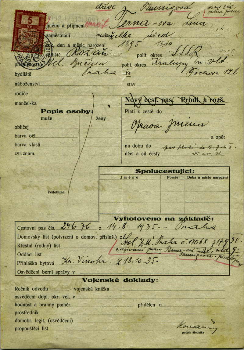 National archives Prague > Police Directorate Prague > 1931-1940 > T > Ternová Lina