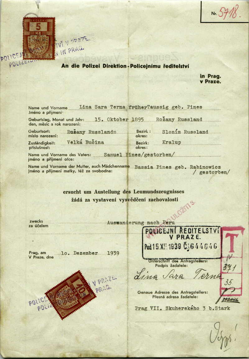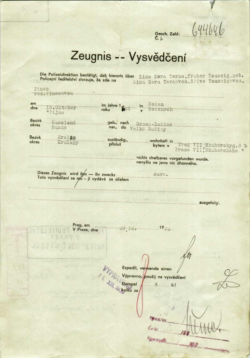National archives Prague > Police Directorate Prague > 1931-1940 > T > Ternová Lina