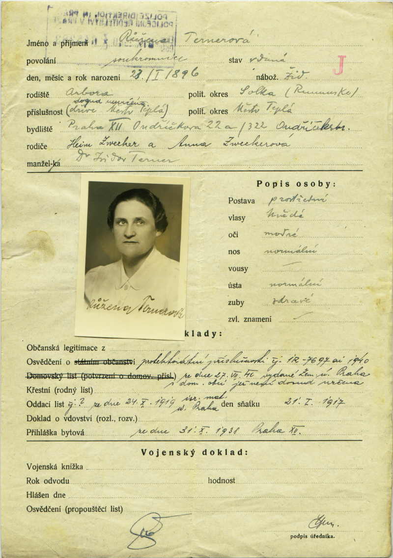 National archives Prague > Police Directorate Prague > 1931-1940 > T > Ternerová Růžena