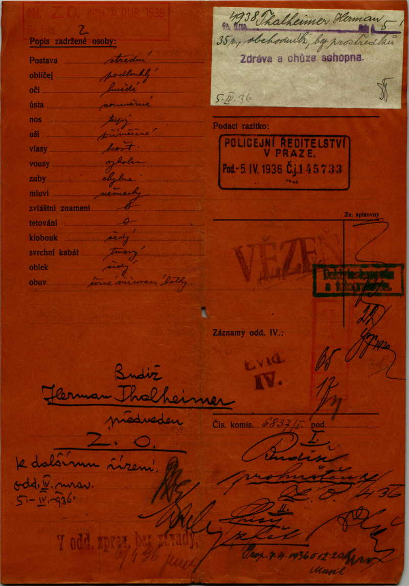National archives Prague > Police Directorate Prague > 1931-1940 > T > Thalheimer Heřman
