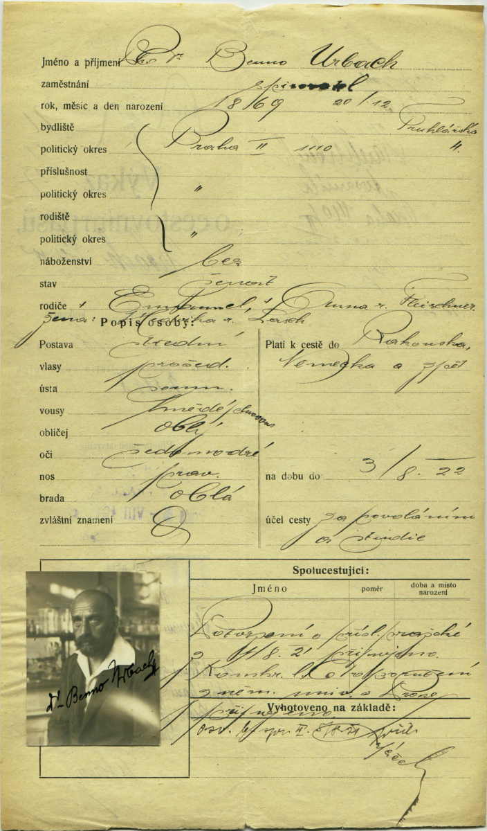 National archives Prague > Police Directorate Prague > 1931-1940 > U > Urbach Beno