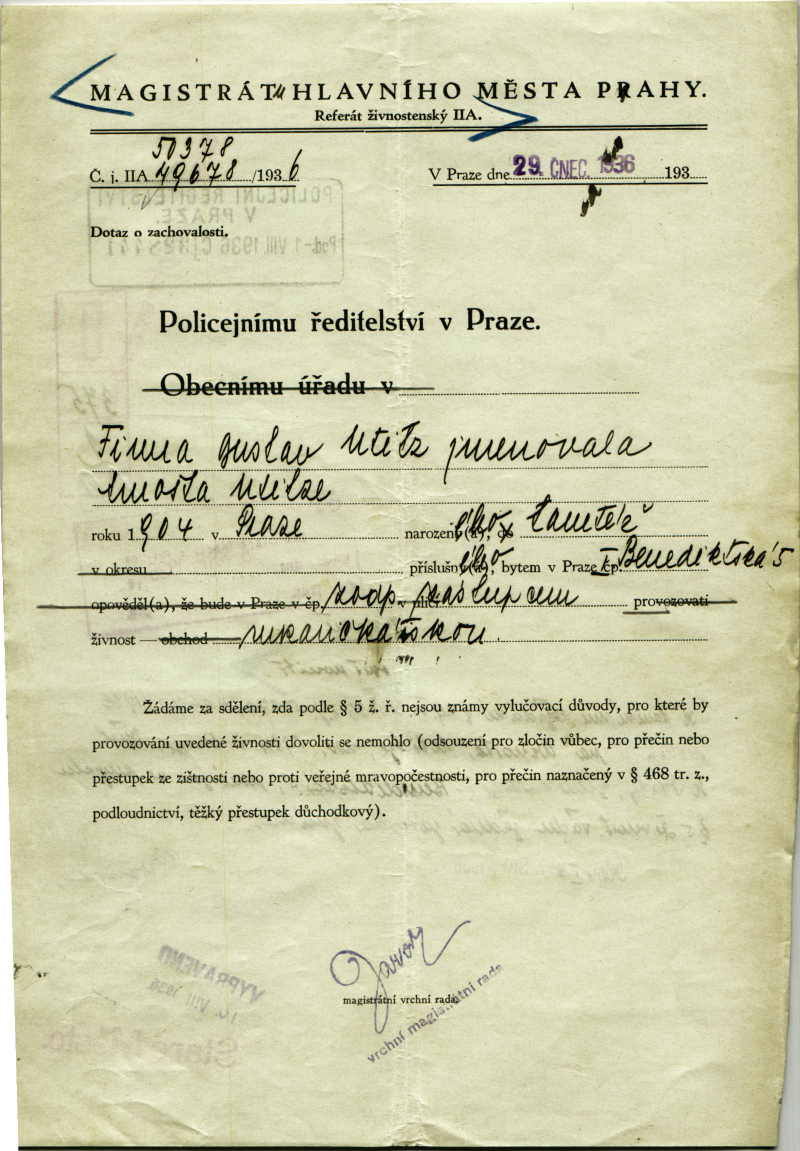 Utitz Arnošt: Probity investigation