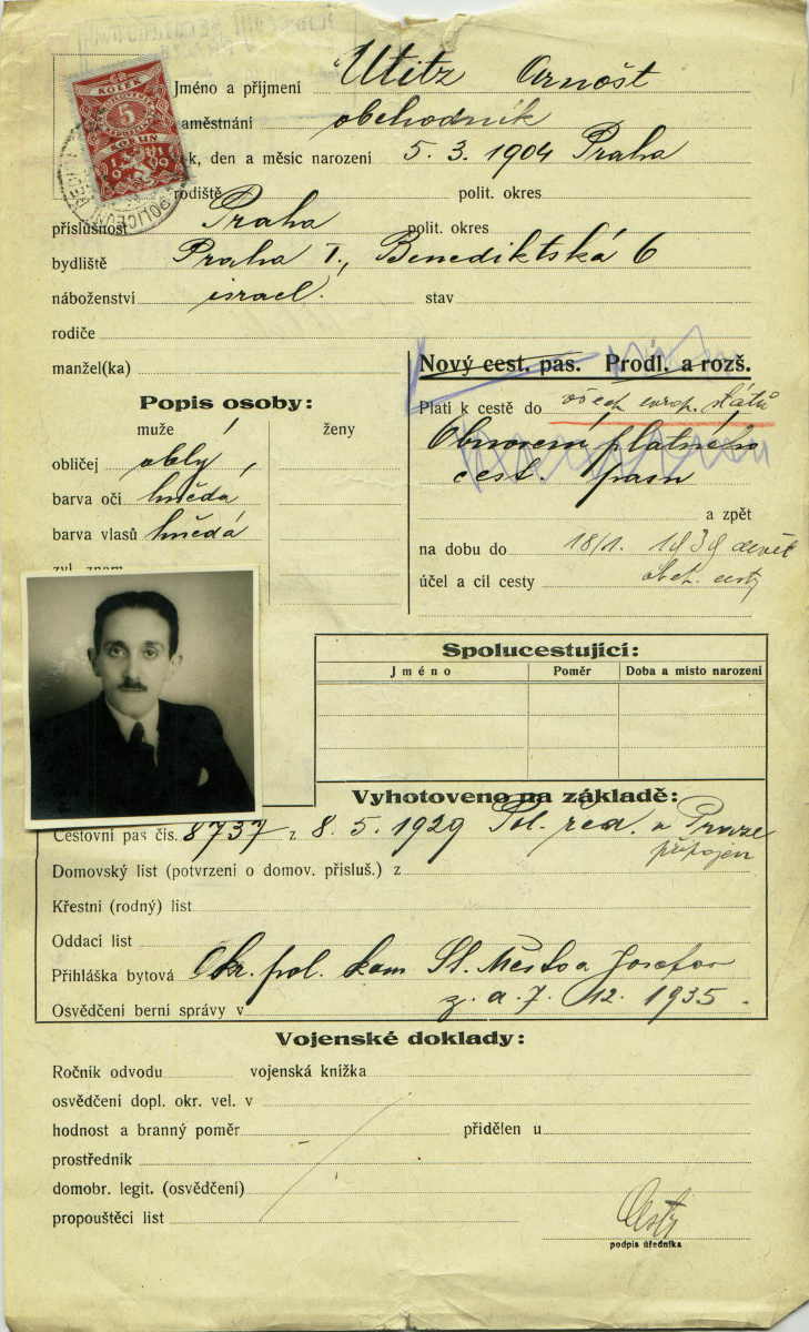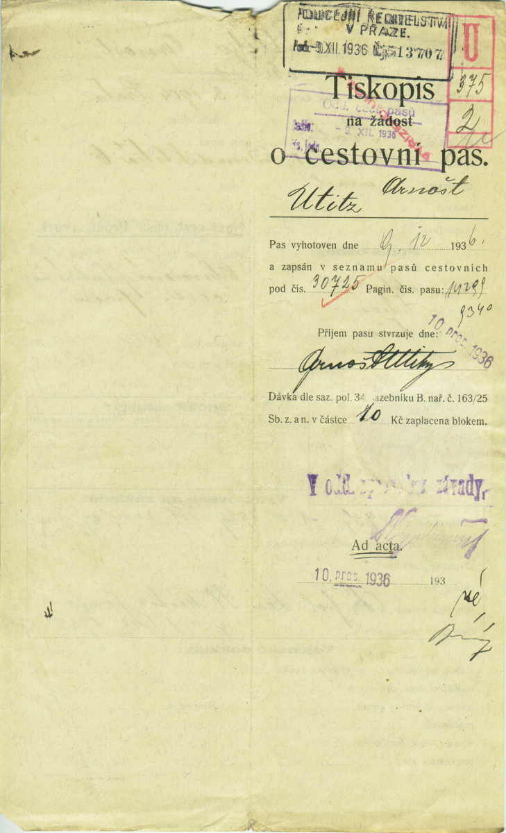Utitz Arnošt: Passport application