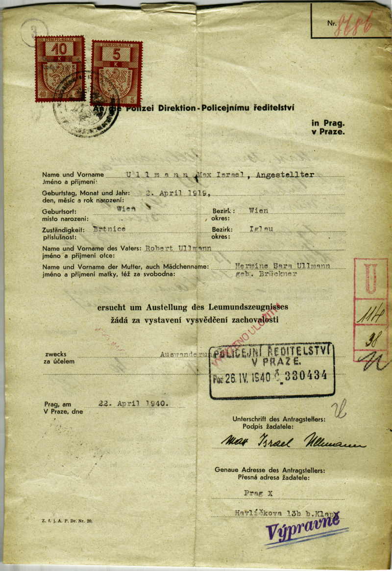 National archives Prague > Police Directorate Prague > 1941-1950 > U > Ullmann Max