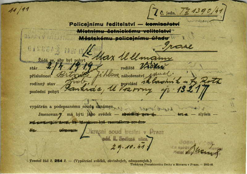 National archives Prague > Police Directorate Prague > 1941-1950 > U > Ullmann Max