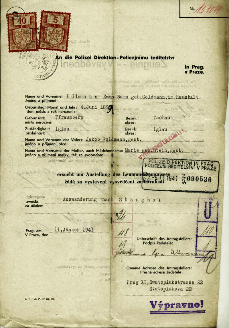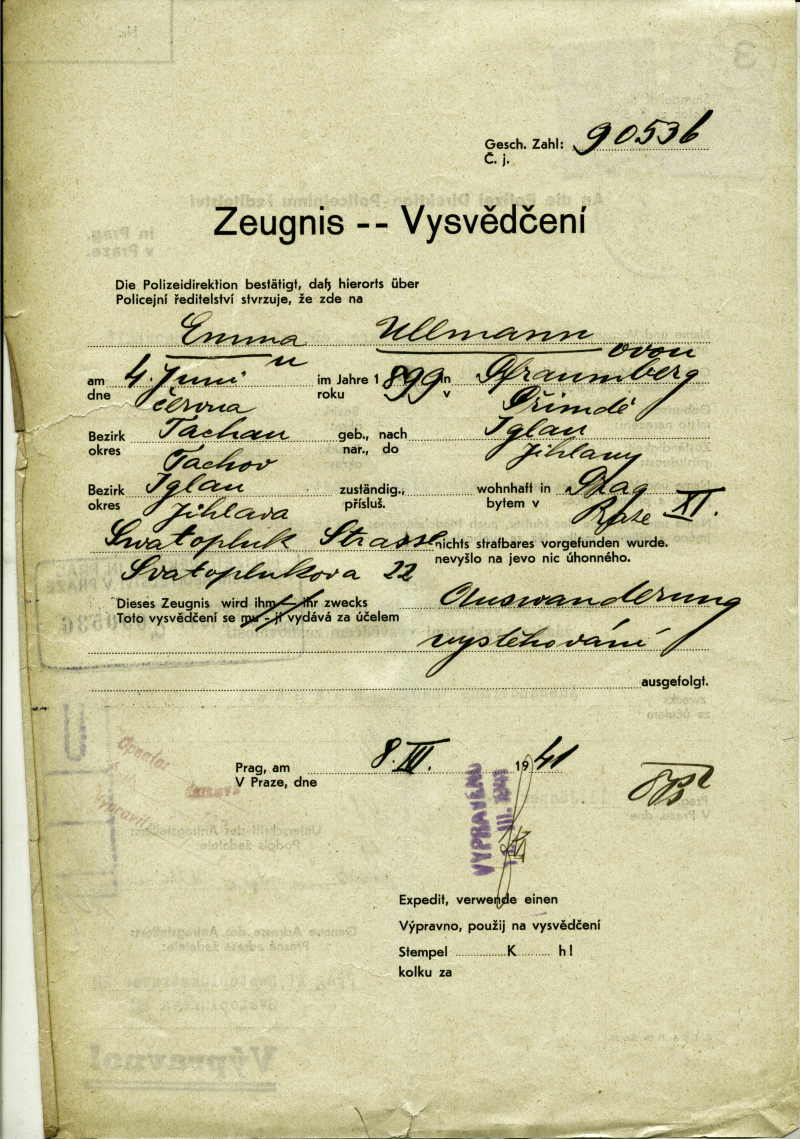 National archives Prague > Police Directorate Prague > 1941-1950 > U > Ullmannová Ema
