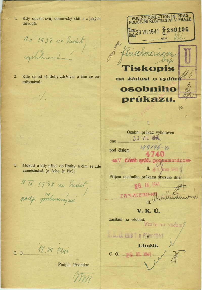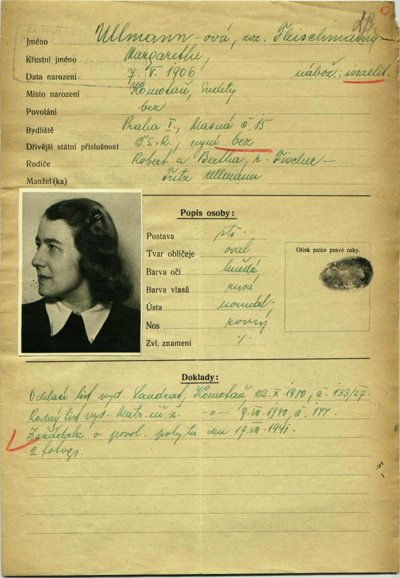 National archives Prague > Police Directorate Prague > 1941-1950 > U > Ulmannová Markéta