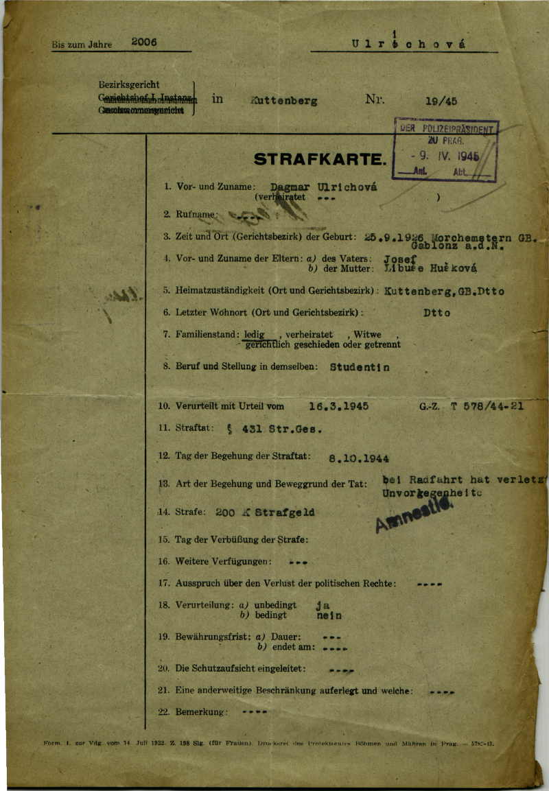 This database contains the names and fates of those who were deported from the territory of today’s Czech Republic, be it their homeland or may they have been deported to the Theresienstadt ghetto before from different european countries. Further, it contains basic information on those men, women and children, most of whom were Roma or Sinti, who died as prisoners of the so-called „Gypsy camp I“ Lety u Písku.