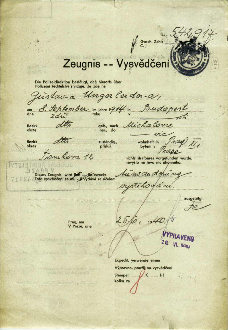 National archives Prague > Police Directorate Prague > 1941-1950 > U > Ungerleider Gustav