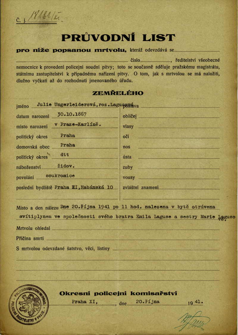 This database contains the names and fates of those who were deported from the territory of today’s Czech Republic, be it their homeland or may they have been deported to the Theresienstadt ghetto before from different european countries. Further, it contains basic information on those men, women and children, most of whom were Roma or Sinti, who died as prisoners of the so-called „Gypsy camp I“ Lety u Písku.
