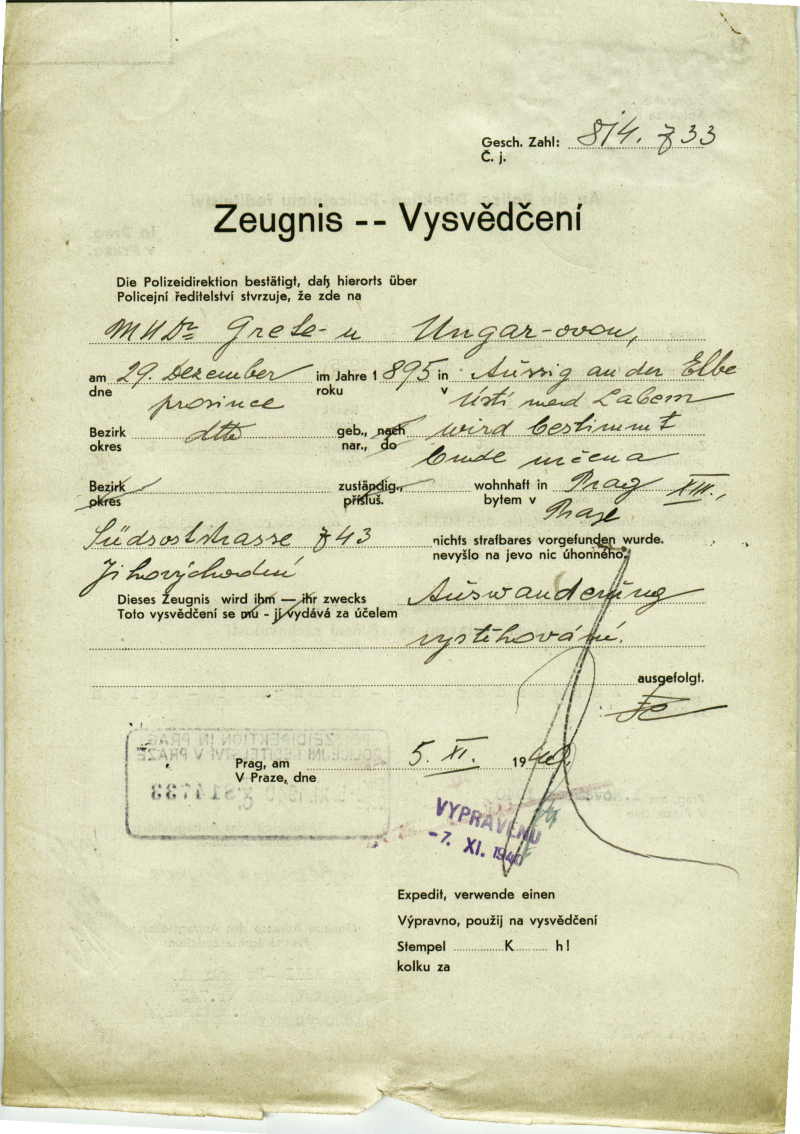 National archives Prague > Police Directorate Prague > 1941-1950 > U > Ungarová Greta