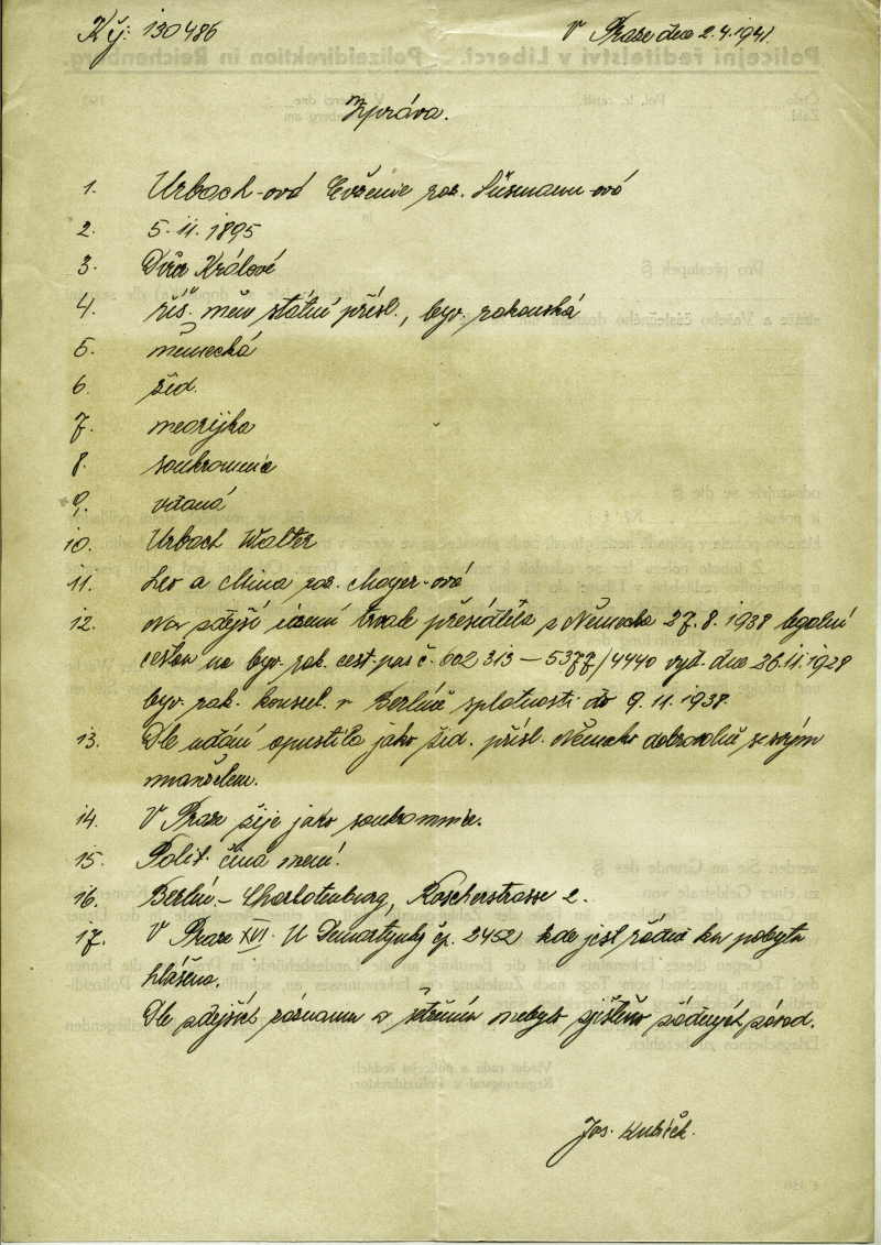 National archives Prague > Police Directorate Prague > 1941-1950 > U > Urbach Valtr