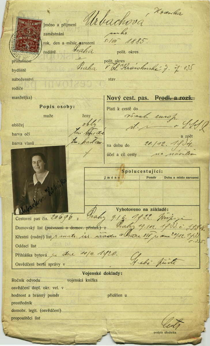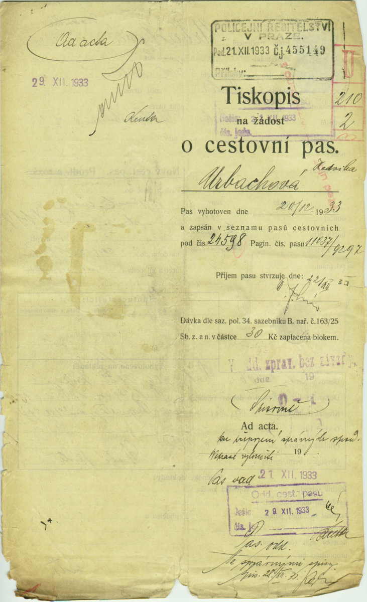 Urbachová Hedwig: Passport application