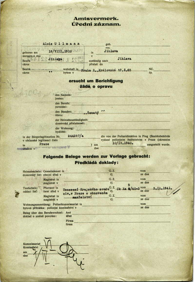 Ullmann Alois: Žádost o opravu v občanské legitimaci