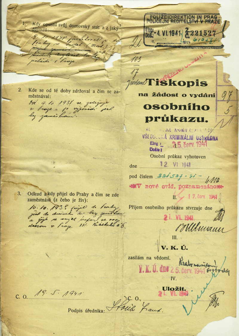 Ullmann Bedřich: Identity card application