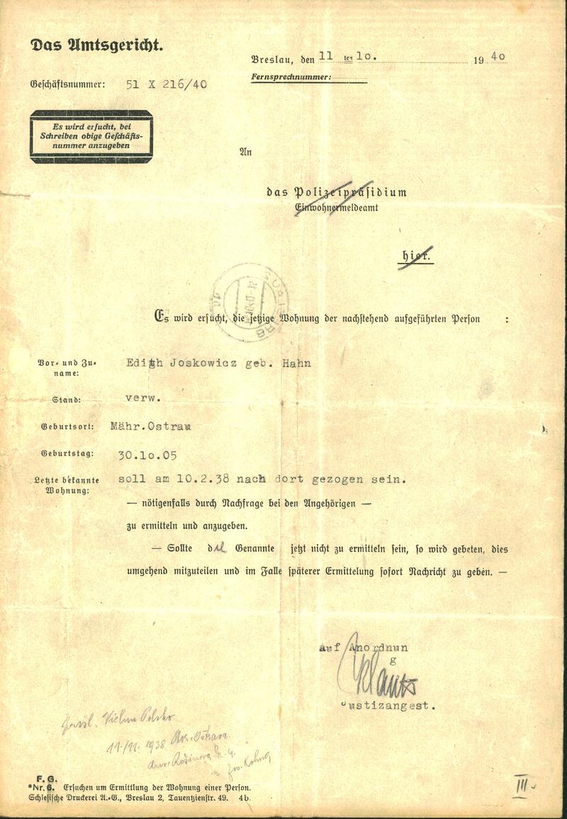Jottkowitzová Edita: Šetření o pobytu