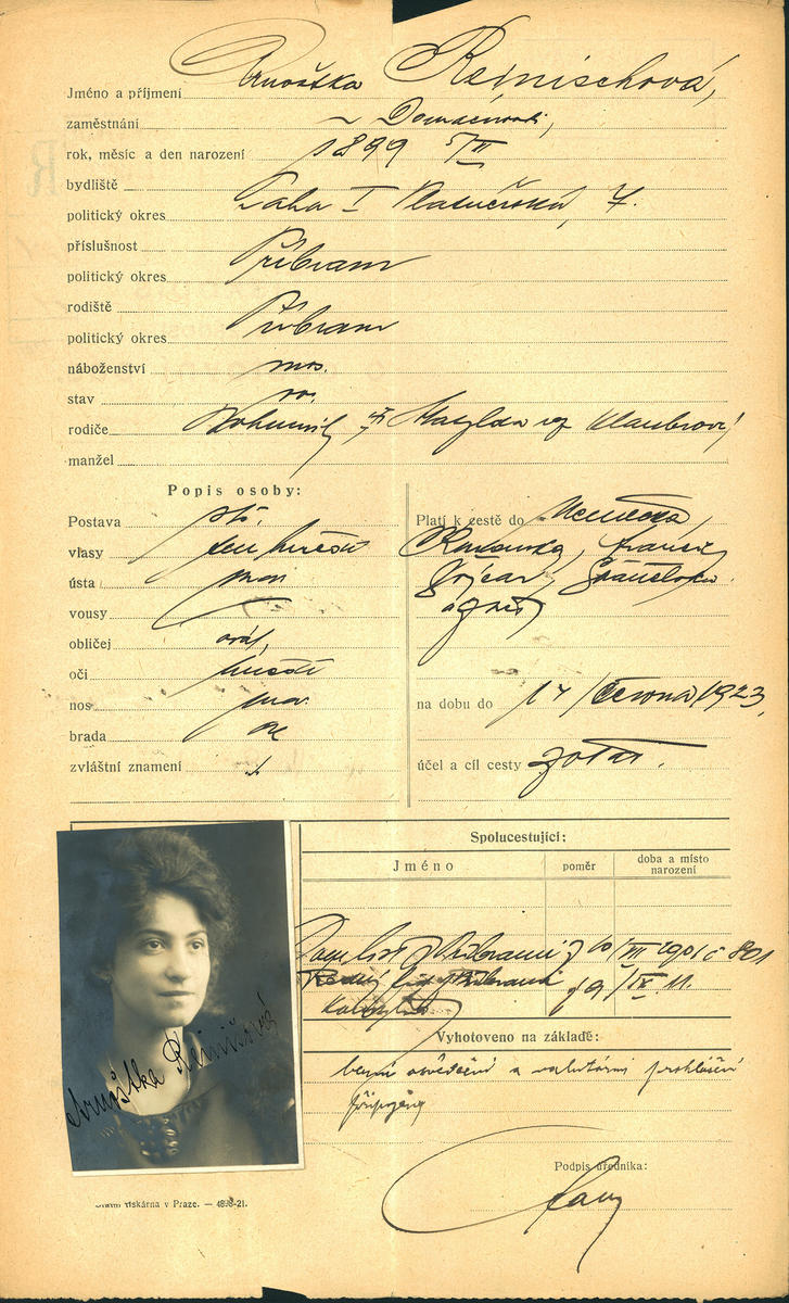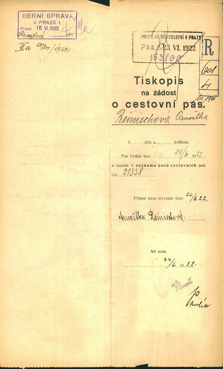 Janovicová Arnoštka: Žádost o vydání cestovního pasu