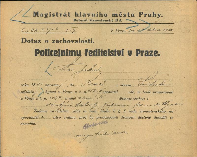 National archives Prague > Police Directorate Prague > 1931-1940 > J > Jackerle Leo