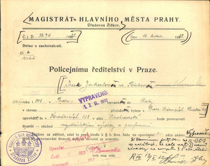 National archives Prague > Police Directorate Prague > 1931-1940 > J > Jakerleová Irena